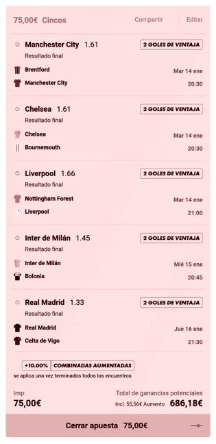 Apuesta Riesgo 75 €, Saldo 2.938,33 € + 20 CA