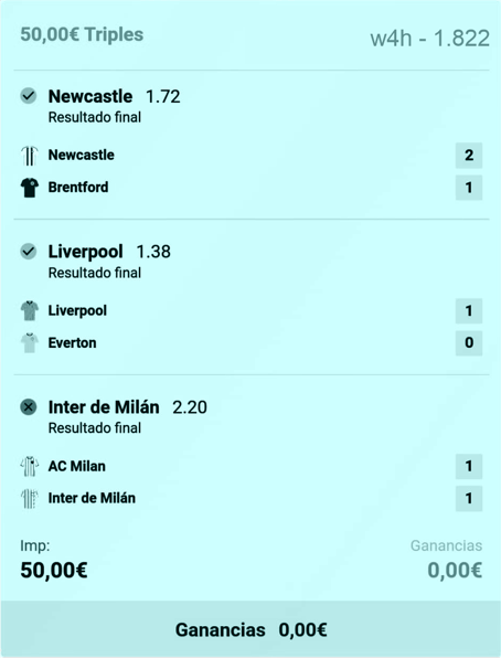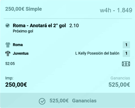 En fin, es una Apuesta promo sin importancia. La añado a la historia por lo cerca que estuvo y porque, joder, eran 100 pavos. Pero mi vida sigue igual y yo paso al siguiente partido entendiendo que la siguiente jugada debe ser esta: