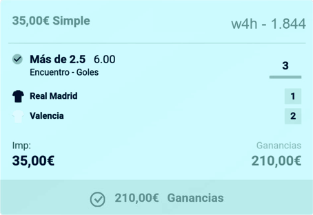 La última de ellas, en el descuento, no es a victoria del Real Madrid sino a gol, y resulta ganadora premiándome con 60 € si descuento todo el gasto.