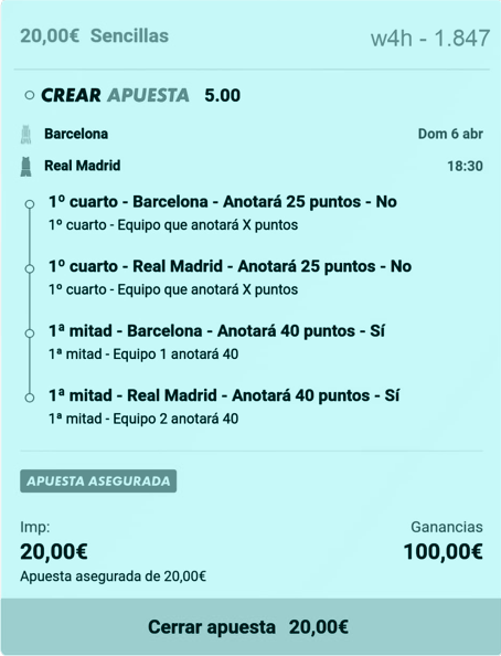 - Cerrar la Apuesta 1850 por unos 80 €.