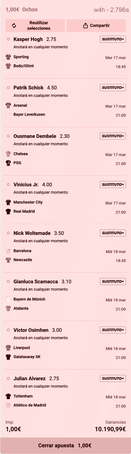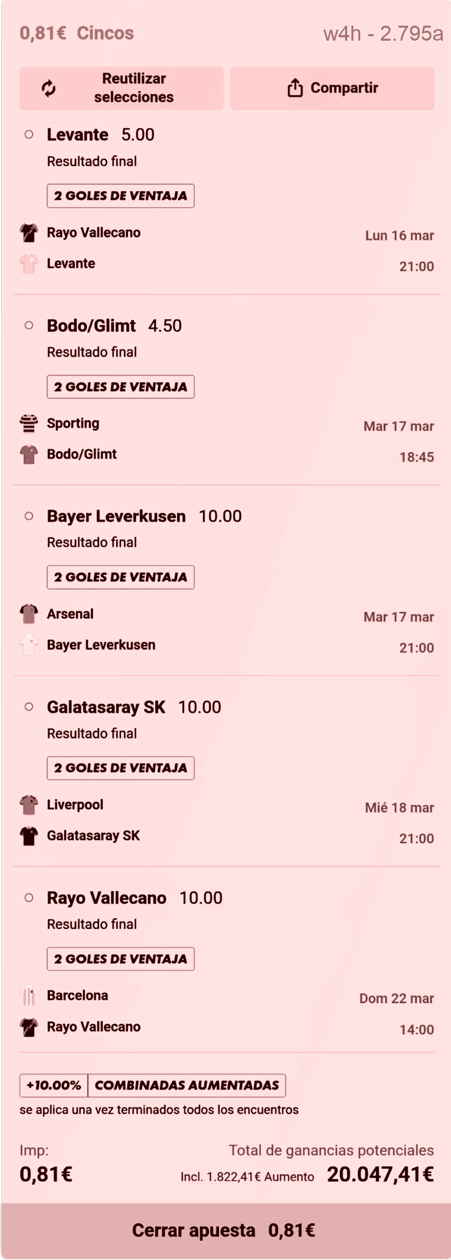Vuelvo a meter un poco de dinero en la Champions en combinadas difíciles. No veo ninguna cuota clara en la que jugarme la pasta.