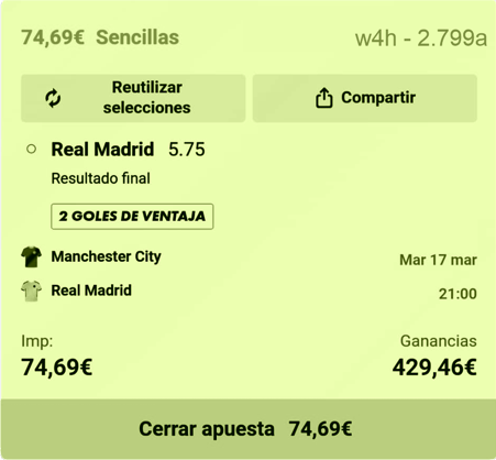 Juego al Real Madrid. No le meto mucho comparado con lo que está por venir, pero algo tengo que meter a estas cuotas, son demasiado altas.
