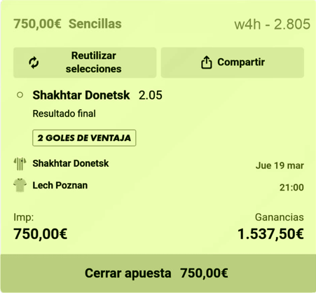 Apuesta Segura 750,00 €, Saldo 10.500,00 €