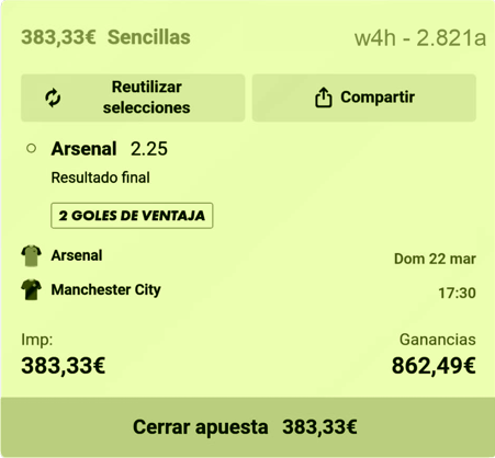 Apuesta Segura 633,33 €, Saldo 10.316.67 €