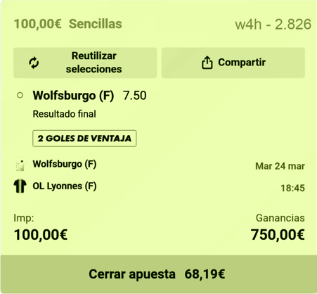 ¡Qué pena! Ojalá no hubiera cubierto esta jugada. Porque era perfecta, muy bien analizada y muy bien tirada, pero lo hice y apechugo. El beneficio final el de 227 € (no está nada mal teniendo en cuenta que estoy en Saldo de Referencia) puesto que debo restar los 423 € utilizados para cubrir mi apuesta.